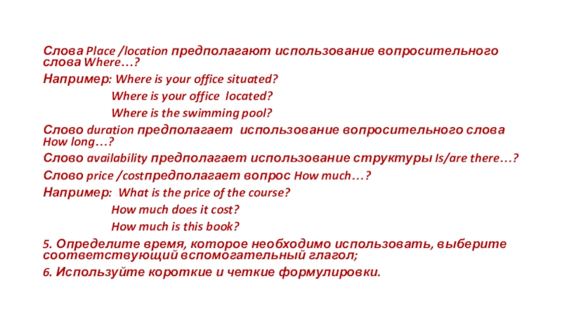 Слайд 15Слова Place /location предполагают использование вопросительного слова Where…?