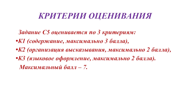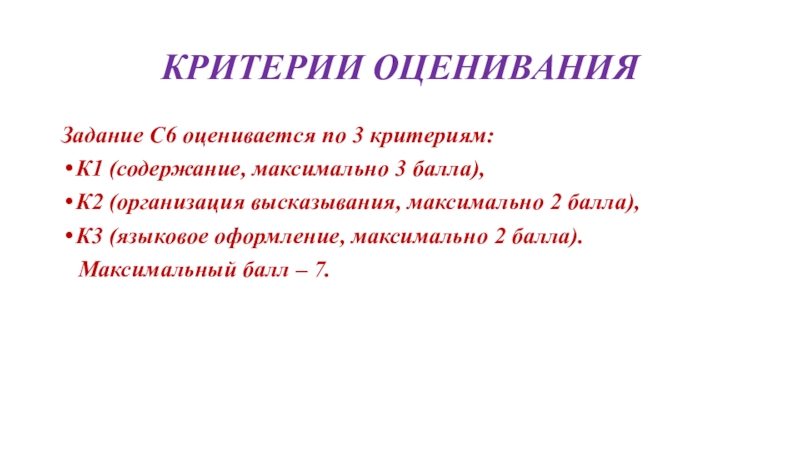 Слайд 12КРИТЕРИИ ОЦЕНИВАНИЯ