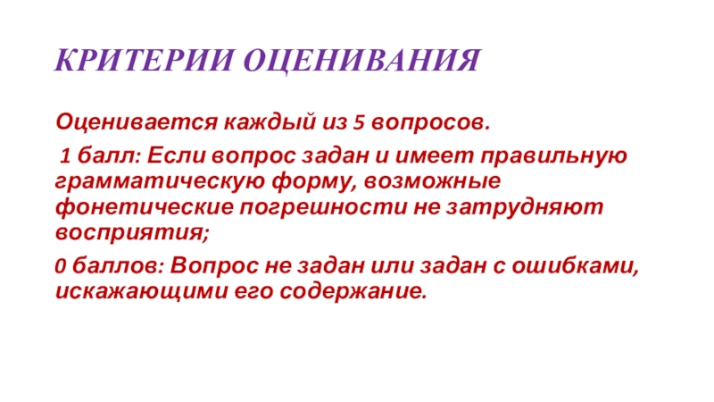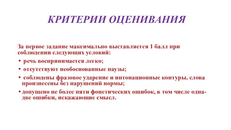 Слайд 8 КРИТЕРИИ ОЦЕНИВАНИЯ