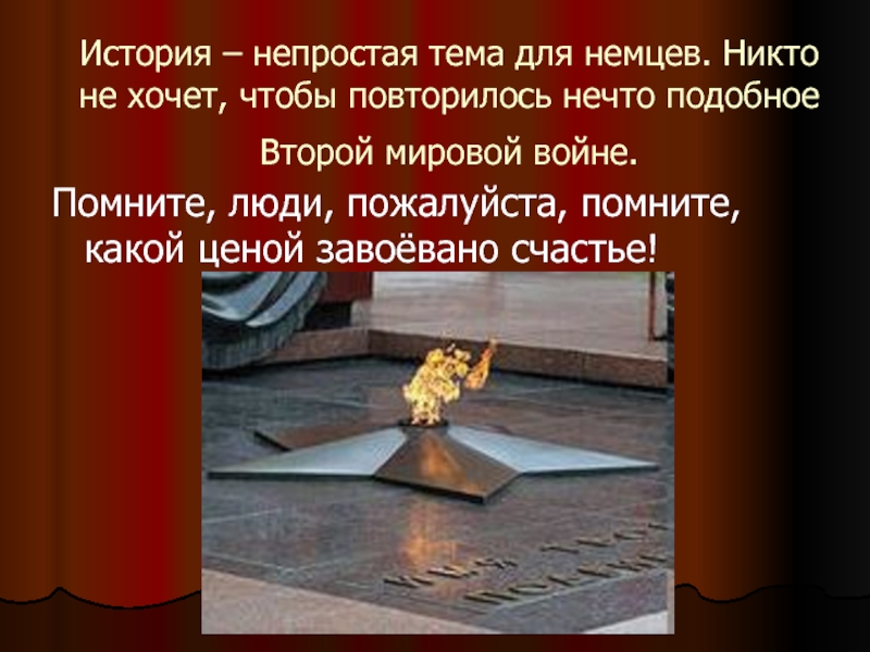 Слайд 47История – непростая тема для немцев. Никто не хочет, чтобы повторилось