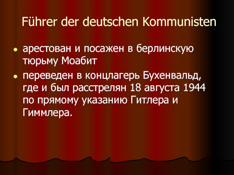 в концлагерь Бухенвальд, где и был расстрелян 18 августа 1944 по прямому указанию Гитлера и Гиммлера.