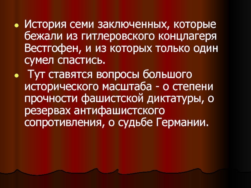 Тут ставятся вопросы большого исторического масштаба - о степени прочности фашистской диктатуры, о резервах антифашистского сопротивления, о судьбе Германии.