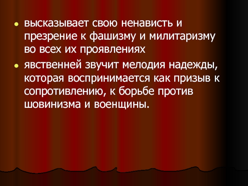 явственней звучит мелодия надежды, которая воспринимается как призыв к сопротивлению, к борьбе против шовинизма и военщины.