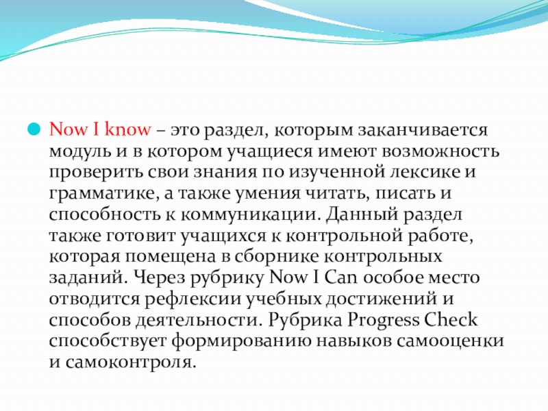 Слайд 12Now I know – это раздел, которым заканчивается модуль и в