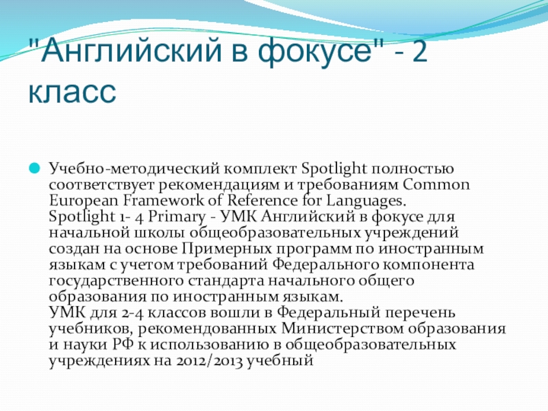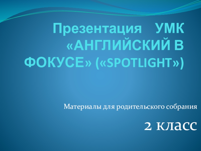 Слайд 1Презентация УМК «АНГЛИЙСКИЙ В ФОКУСЕ» («SPOTLIGHT»)