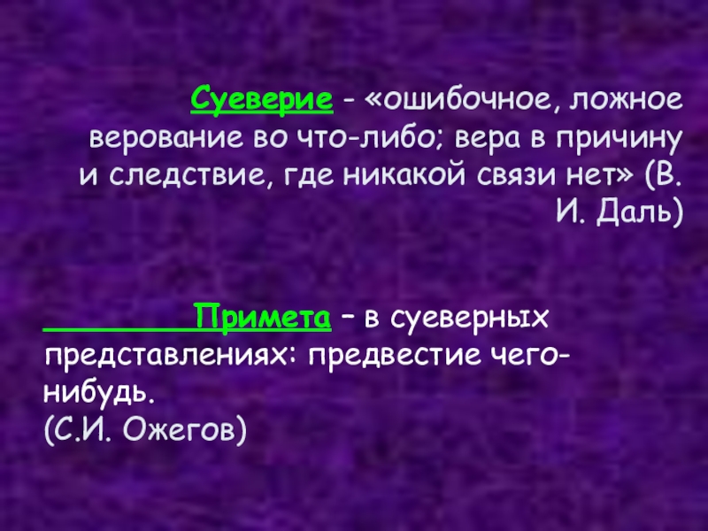 Примета – в суеверных представлениях: предвестие чего-нибудь.
