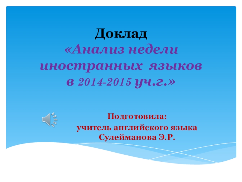 Доклад «Анализ недели иностранных языков  в 2014-2015 уч.г.»Подготовила: учитель английского языка Сулейманова Э.Р.