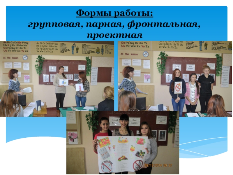 Слайд 18Формы работы: групповая, парная, фронтальная, проектная