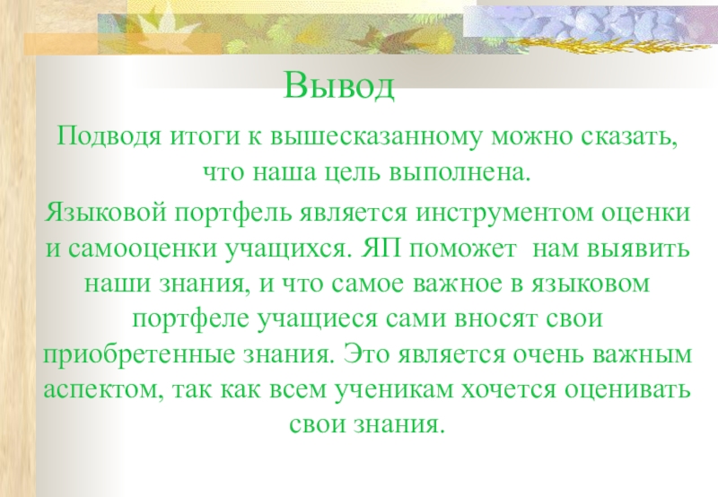 Это сайт презентаций, где можно хранить и обмениваться своими презентациями, докладами, проектами, шаблонами в формате PowerPoint с другими пользователями. Мы помогаем школьникам, студентам, учителям, преподавателям хранить и обмениваться учебными материалами.