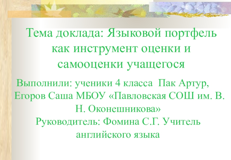 4 класса Пак Артур, Егоров Саша МБОУ «Павловская СОШ им. В.Н. Оконешникова»
