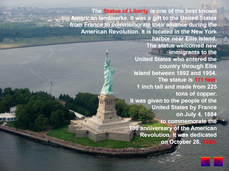Слайд 13The Statue of Liberty is one of the best known American