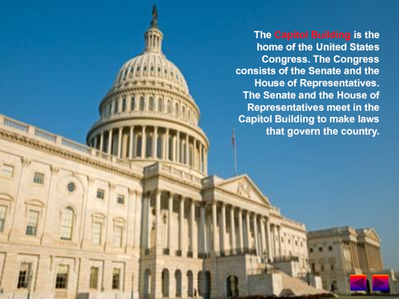 Слайд 3The Capitol Building is the home of the United States Congress.