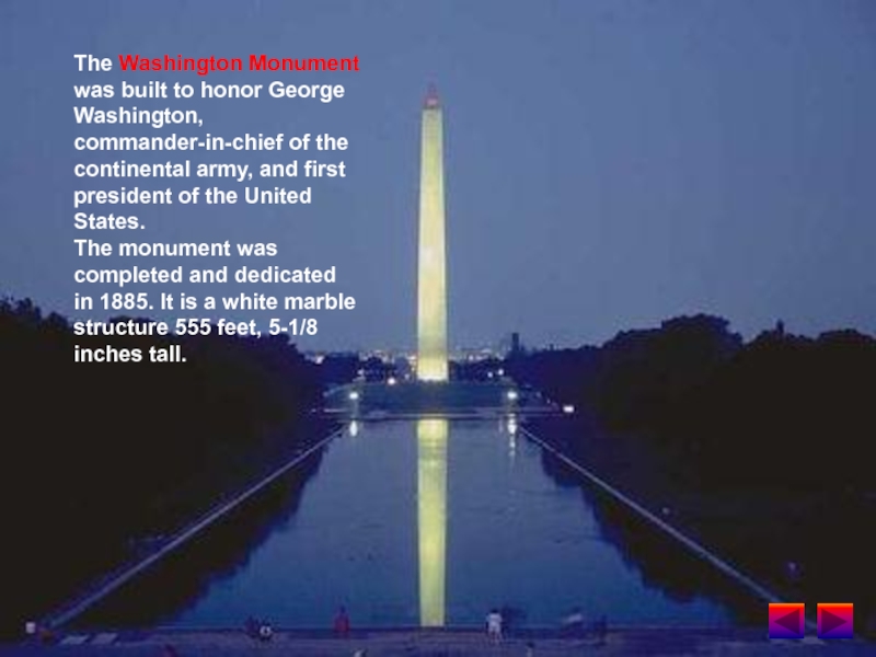 The Washington Monument was built to honor George Washington, commander-in-chief of