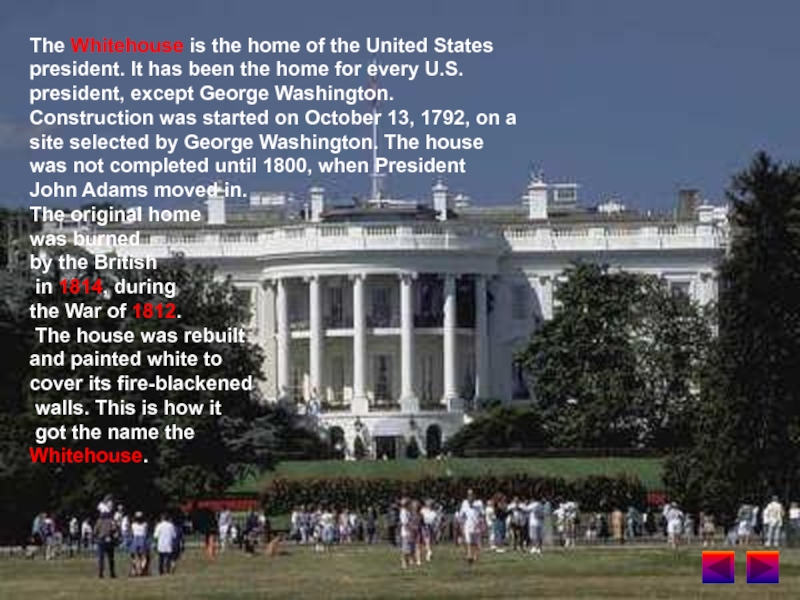 Слайд 19The Whitehouse is the home of the United States president. It
