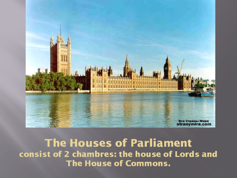 Слайд 4The Houses of Parliament consist of 2 chambres: the house of Lords