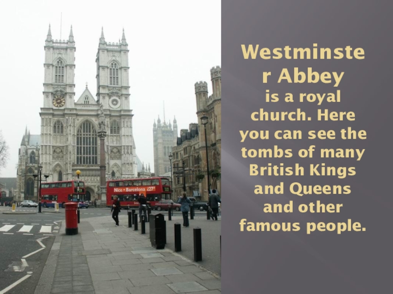 Слайд 3Westminster Abbey is a royal church. Here you can see the tombs