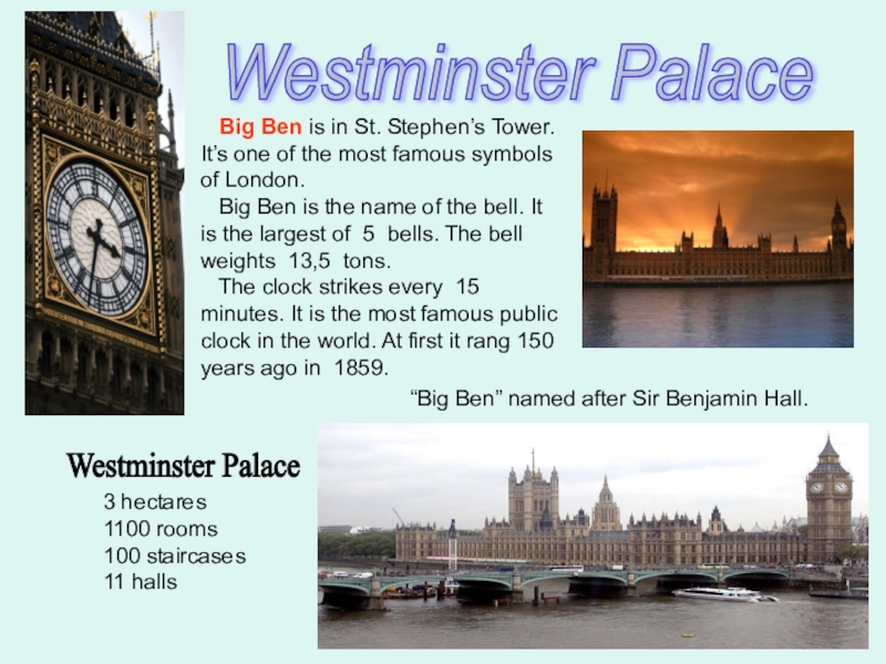 Big Ben is in St. Stephen’s Tower. It’s one of the most famous symbols of London.
