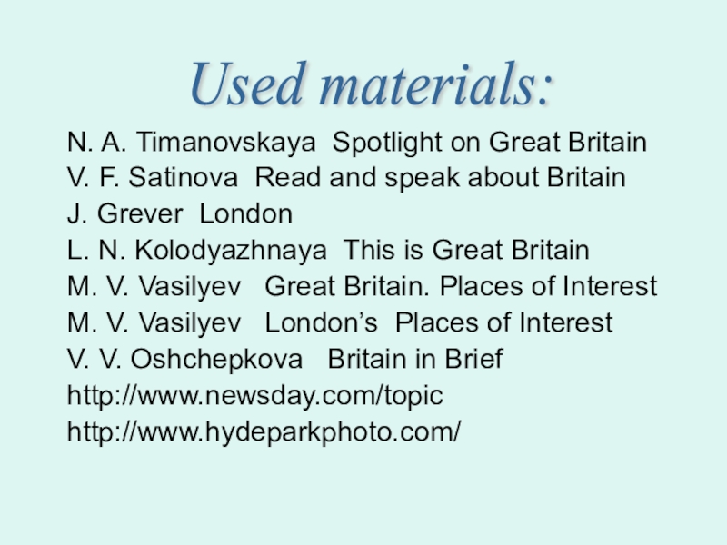 Hyde Park is the largest park in London. It was founded in 1536, now it is a popular place for recreation. It is Londoner’s favourite resting place.