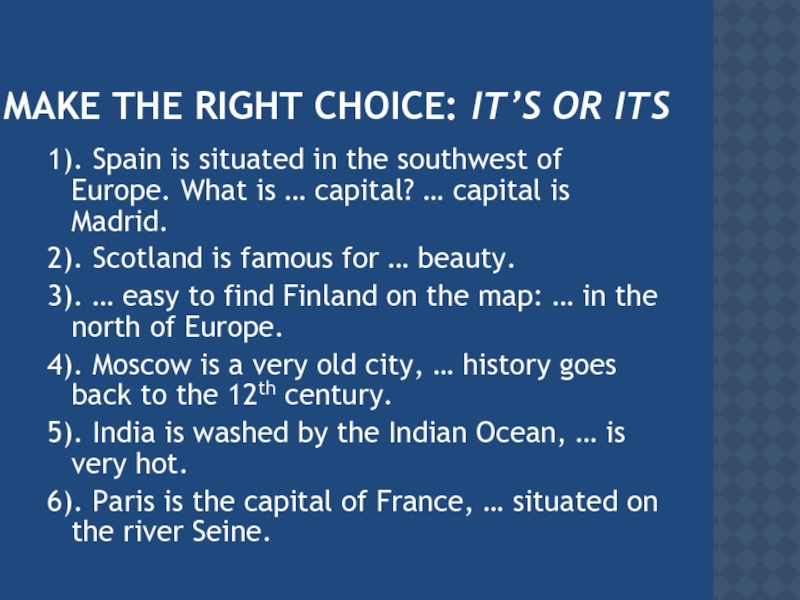 the southwest of Europe. What is … capital? … capital is Madrid.