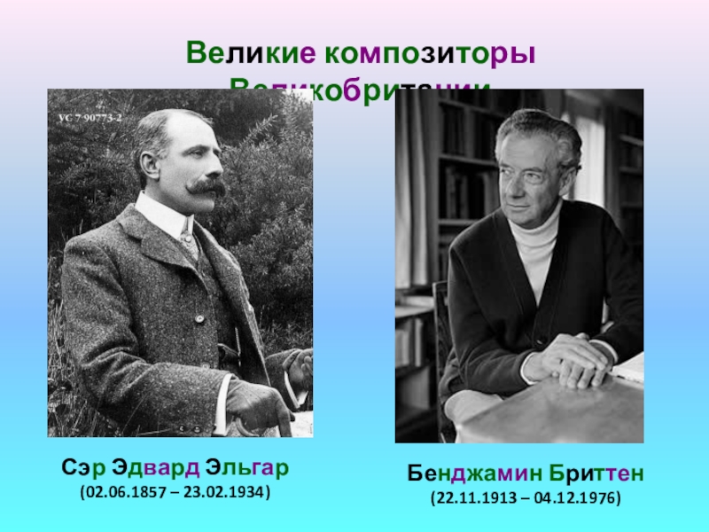 Великие композиторы ВеликобританииСэр Эдвард Эльгар (02.06.1857 – 23.02.1934)Бенджамин Бриттен (22.11.1913 – 04.12.1976)