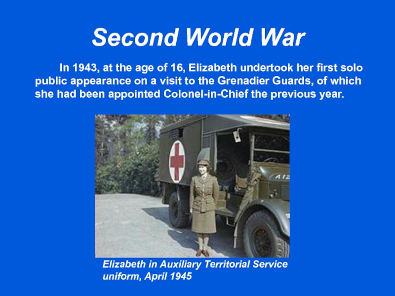 Elizabeth in Auxiliary Territorial Service uniform, April 1945