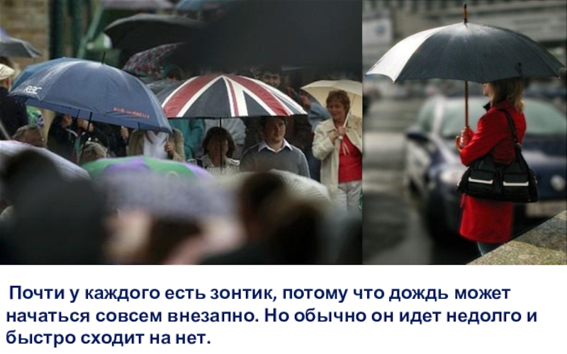 Слайд 16 Почти у каждого есть зонтик, потому что дождь может начаться совсем