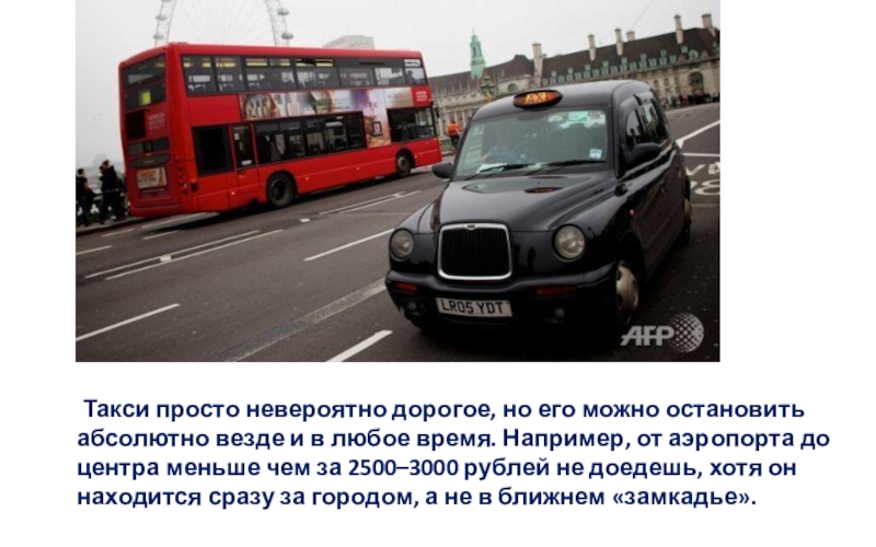 Слайд 9 Такси просто невероятно дорогое, но его можно остановить абсолютно везде и