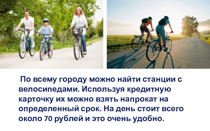 Слайд 12 По всему городу можно найти станции с велосипедами. Используя кредитную карточку