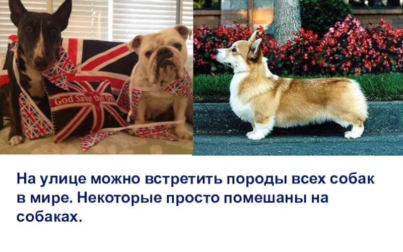Слайд 17На улице можно встретить породы всех собак в мире. Некоторые просто