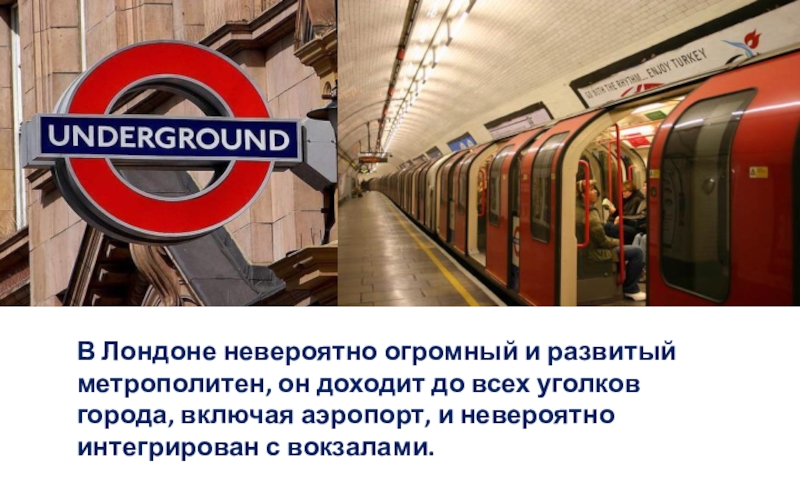 Слайд 11В Лондоне невероятно огромный и развитый метрополитен, он доходит до всех