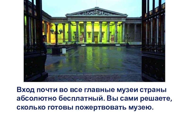 Слайд 14Вход почти во все главные музеи страны абсолютно бесплатный. Вы сами