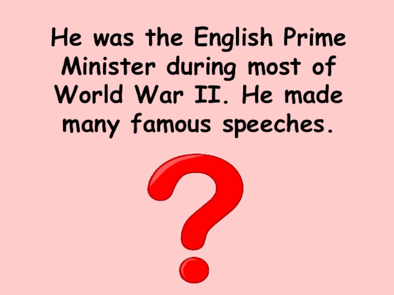 He was the English Prime Minister during most of World War II. He made many famous speeches.