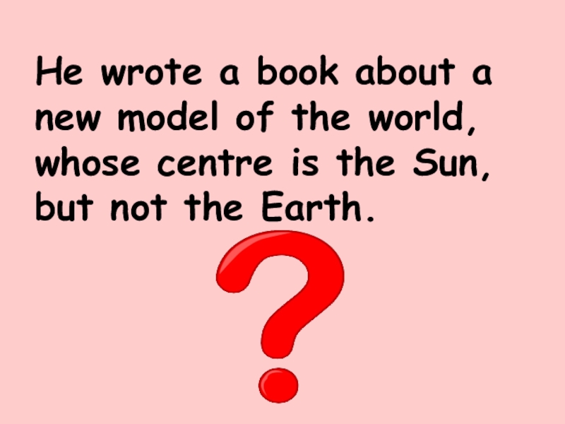 He wrote a book about a new model of the world, whose centre is the Sun, but