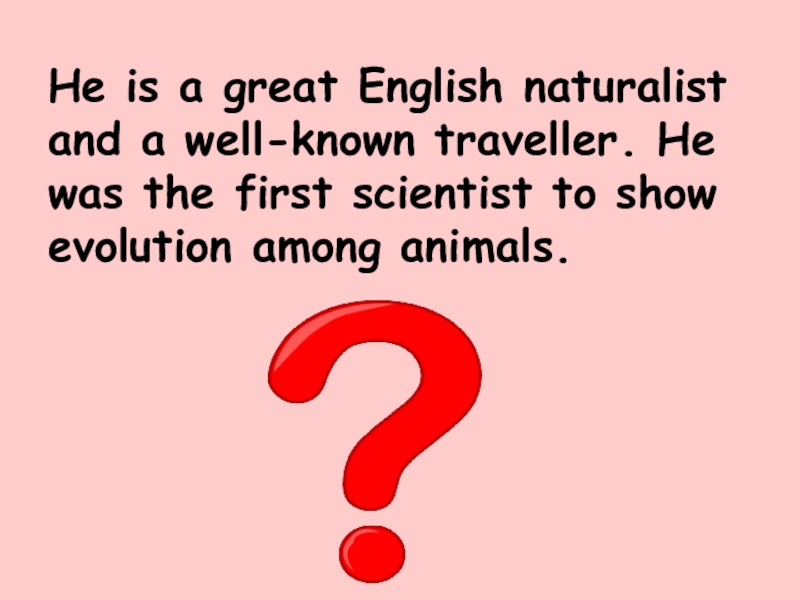 Слайд 13He is a great English naturalist and a well-known traveller. He