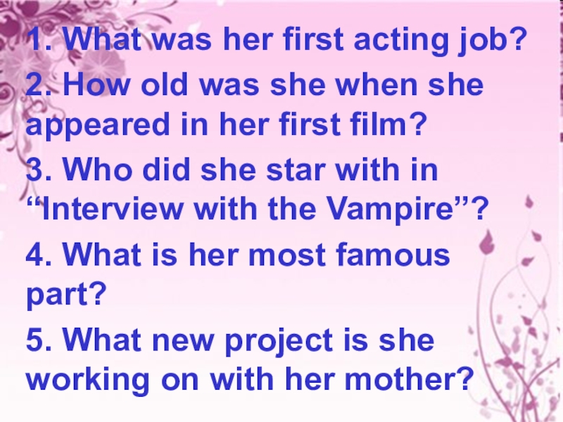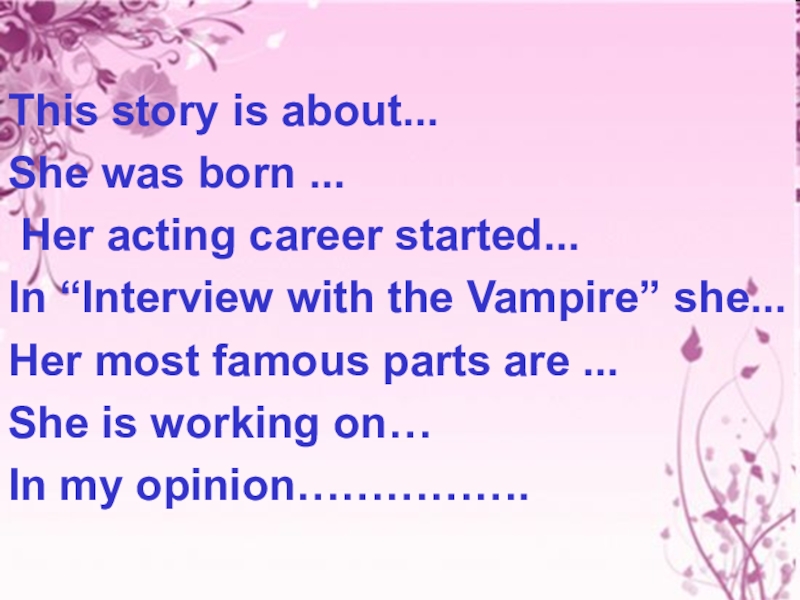 This story is about...She was born ...  Her acting career started...In “Interview with the Vampire” she...Her