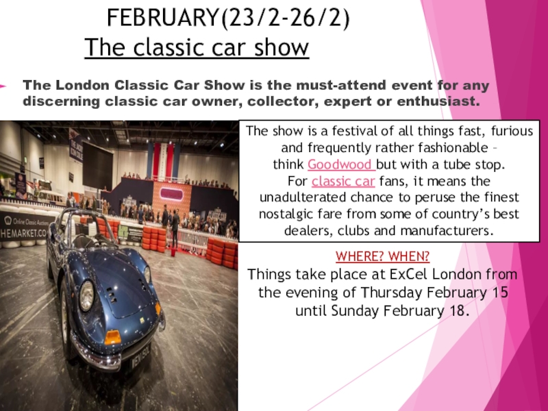 The show is a festival of all things fast, furious and frequently rather fashionable – think Goodwood but with a tube stop. For classic car fans, it means the unadulterated chance to peruse the finest nostalgic fare from some of country’s best dealers, clubs and manufacturers.