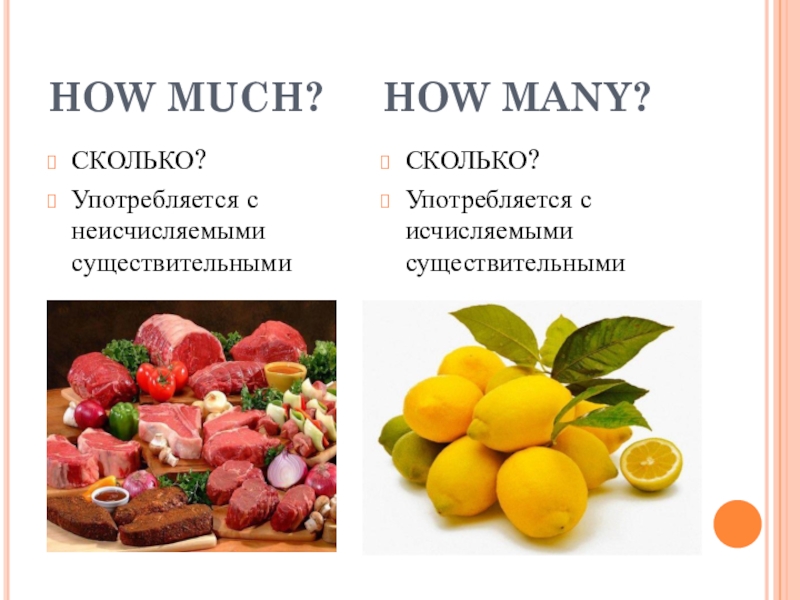 HOW MUCH?   HOW MANY?СКОЛЬКО?Употребляется с неисчисляемыми существительнымиСКОЛЬКО?Употребляется с исчисляемыми существительными