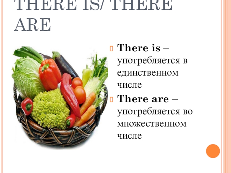 THERE IS/ THERE AREThere is – употребляется в единственном числеThere are – употребляется во множественном числе