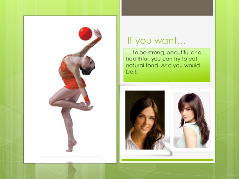 If you want…… to be strong, beautiful and healthful, you can try to eat natural food. And