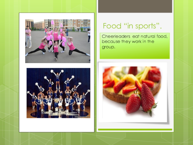 Food “in sports”.Cheerleaders eat natural food, because they work in the group.