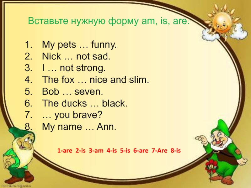 1-are 2-is 3-am 4-is 5-is 6-are 7-Are 8-is