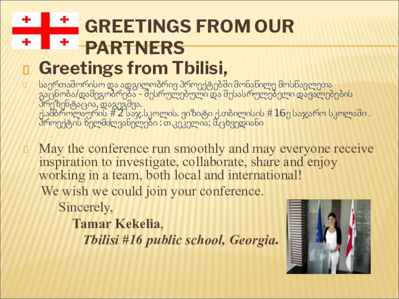 ქ.ამბროლაურის # 2 საჯ.სკოლის. ვიზიტი ქ.თბილისის # 16ე საჯარო სკოლაში . პროექტის ხელმძღვანელები : თ.კეკელია; მ.ცხვედიანი