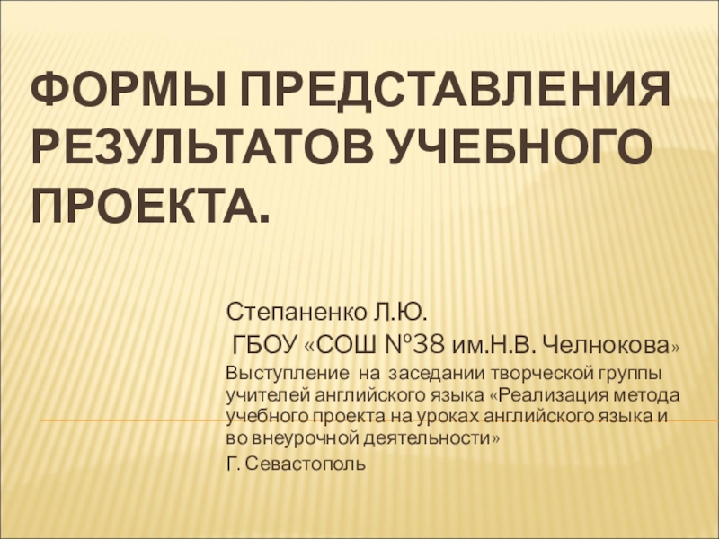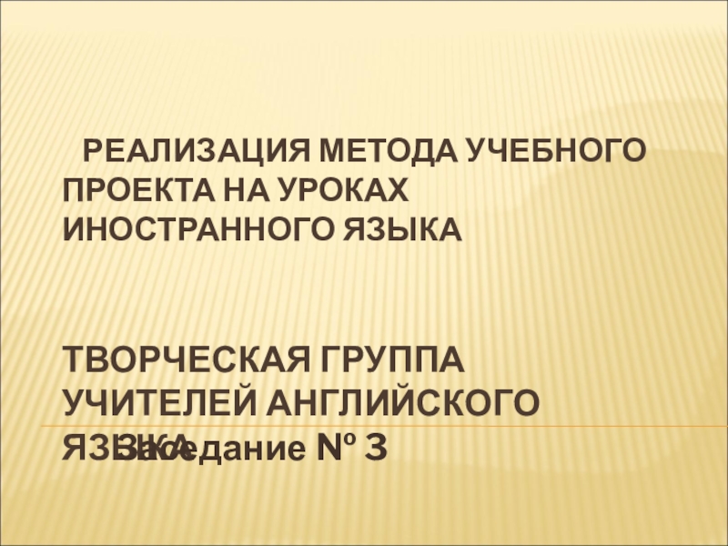 Выступление на заседании творческой группы учителей английского языка «Реализация метода учебного проекта на уроках английского языка и во внеурочной деятельности»