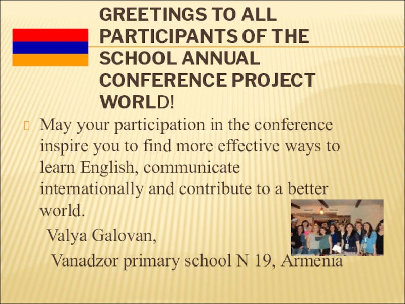 GREETINGS TO ALL PARTICIPANTS OF THE SCHOOL ANNUAL CONFERENCE PROJECT WORLD!
