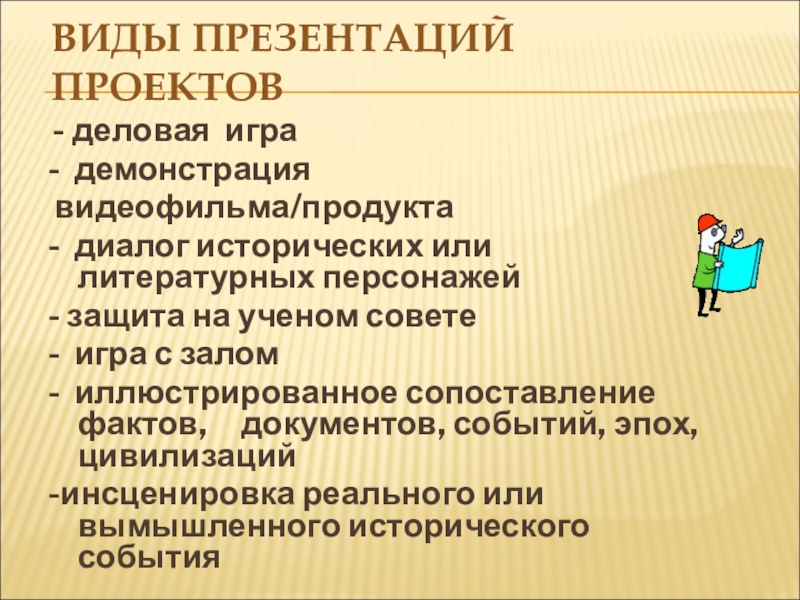 Слайд 11ВИДЫ ПРЕЗЕНТАЦИЙ ПРОЕКТОВ