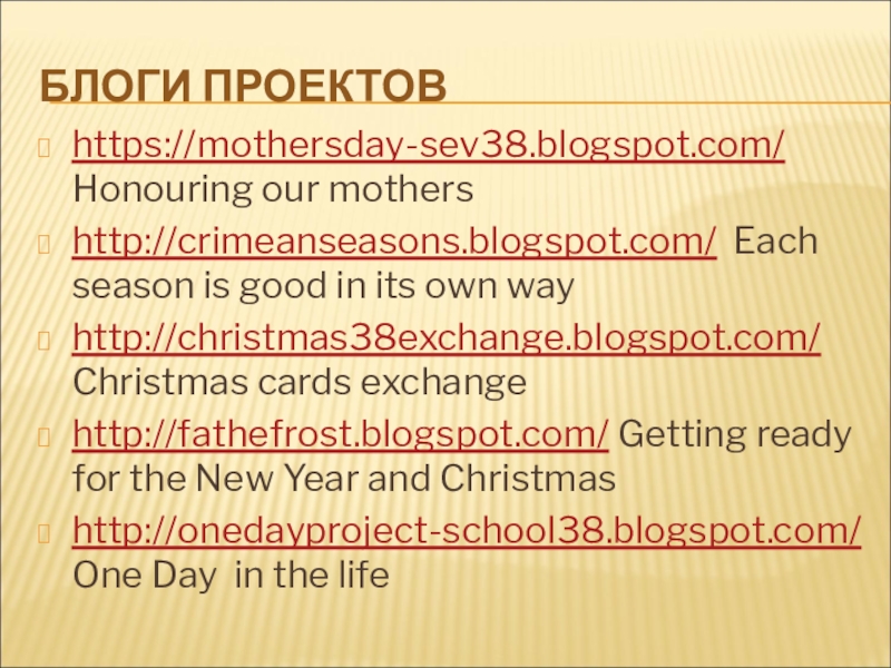 Слайд 15БЛОГИ ПРОЕКТОВ