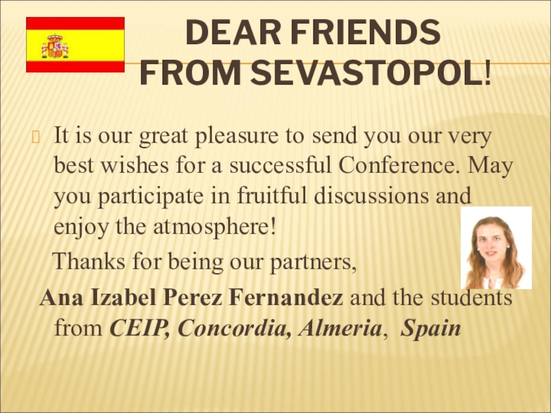 It is our great pleasure to send you our very best wishes for a successful Conference. May you participate in fruitful discussions and enjoy the atmosphere!