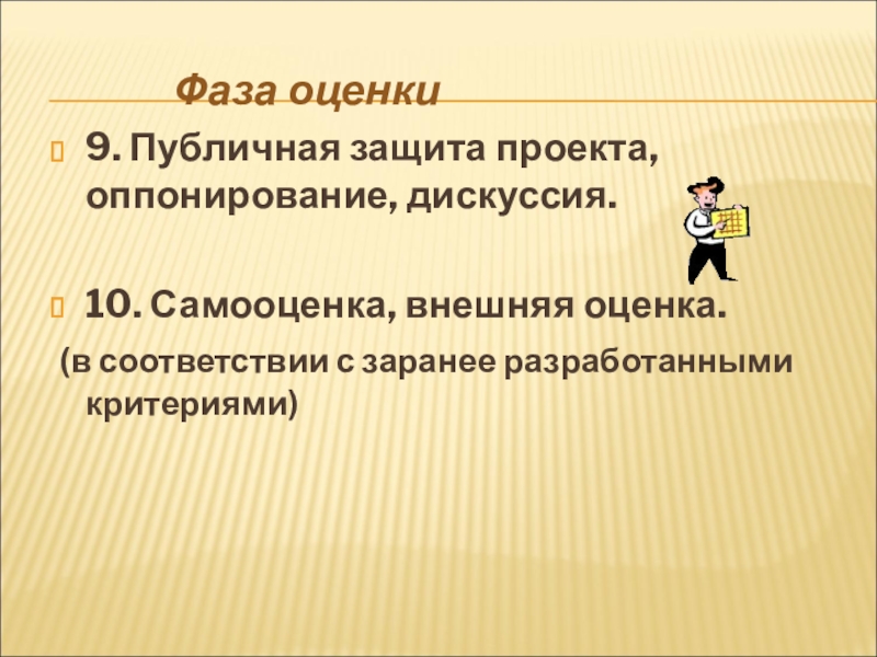 Оценка - совместная оценка накопленного опыта и достигнутых результатов.