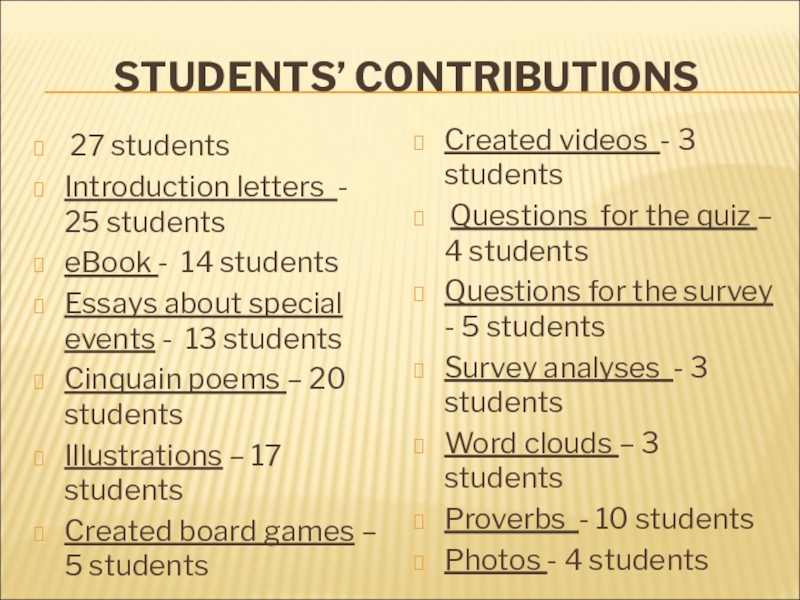 Слайд 34STUDENTS’ CONTRIBUTIONS