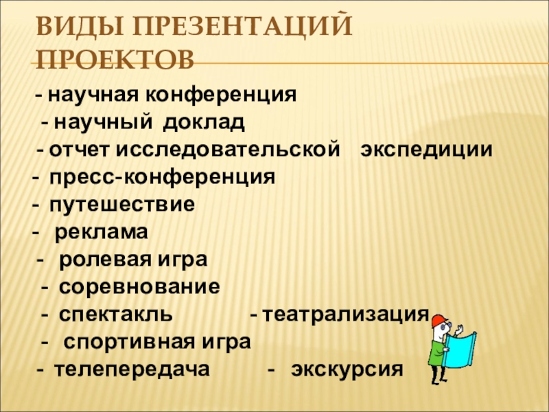 Слайд 10ВИДЫ ПРЕЗЕНТАЦИЙ ПРОЕКТОВ
